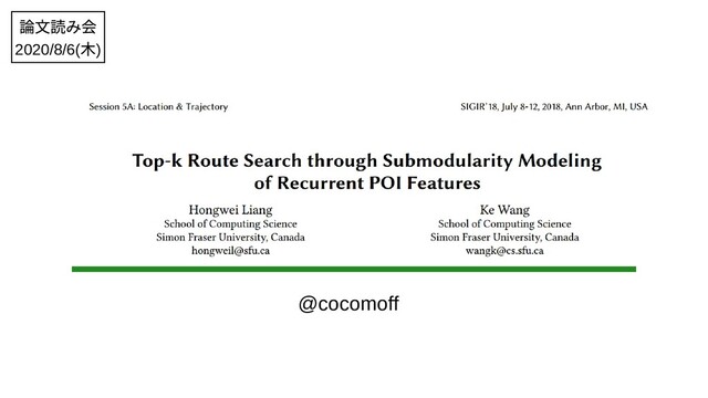 ∑ i T i→j∈P ∑ i,j ユーザは から出発して へ向かい,特徴の好みベクトル , 予算 ,閾値 ,集約関数 をもつ (query ) 集約関数 は,経路のどこを評価するか?を抽象的に書いたもの 下の定義だとイマイチよく分からない ( 論⽂通じてよく分からない) このとき,経路 を通る場合の利得 は Gain(P , Q) : V = w Φ (P ) h∈H ∑ h h V 4/14 P x y w ∈ [0, 1]∣H∣ b θ Φ Q = (x, y, b, w, θ, Φ) Φ PV Gain