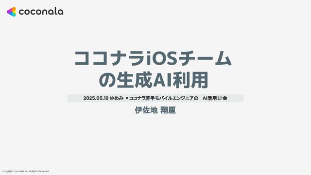 Copyright coconala Inc. All Rights Reserved. ココナラiOSチーム の生成AI利用 伊佐地 翔厘