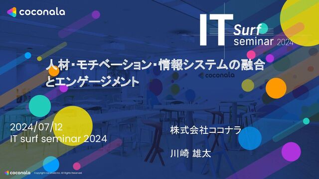 Copyright coconala Inc. All Rights Reserved. 人材・モチベーション・情報システムの融合 とエンゲージメント 株式会社ココナラ 川崎