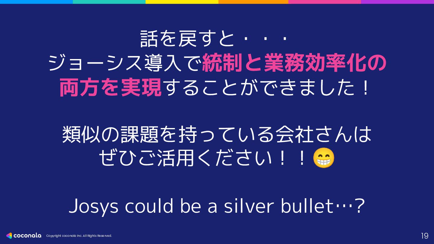 6. Copyright coconala Inc. All Rights Reserved. ジョーシスとの出会い 12 もともとは「作業効率化」の手段として導入を検討 当時、SaaSを20種類以上導入しており、
