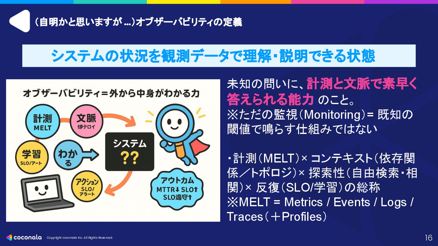 2025/10/27に開催された「Observability Conference Tokyo 2025」の登壇資料。 https://o11ycon.jp/ https://o11ycon.jp/sessions/997198/