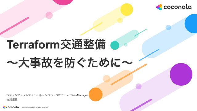 Copyright coconala Inc. All Rights Reserved. Terraformަ௨උ ʙେࣄނΛ͙ͨΊʹʙ γεςϜϓϥοτϑΥʔϜ෦ ΠϯϑϥɾSREνʔϜ