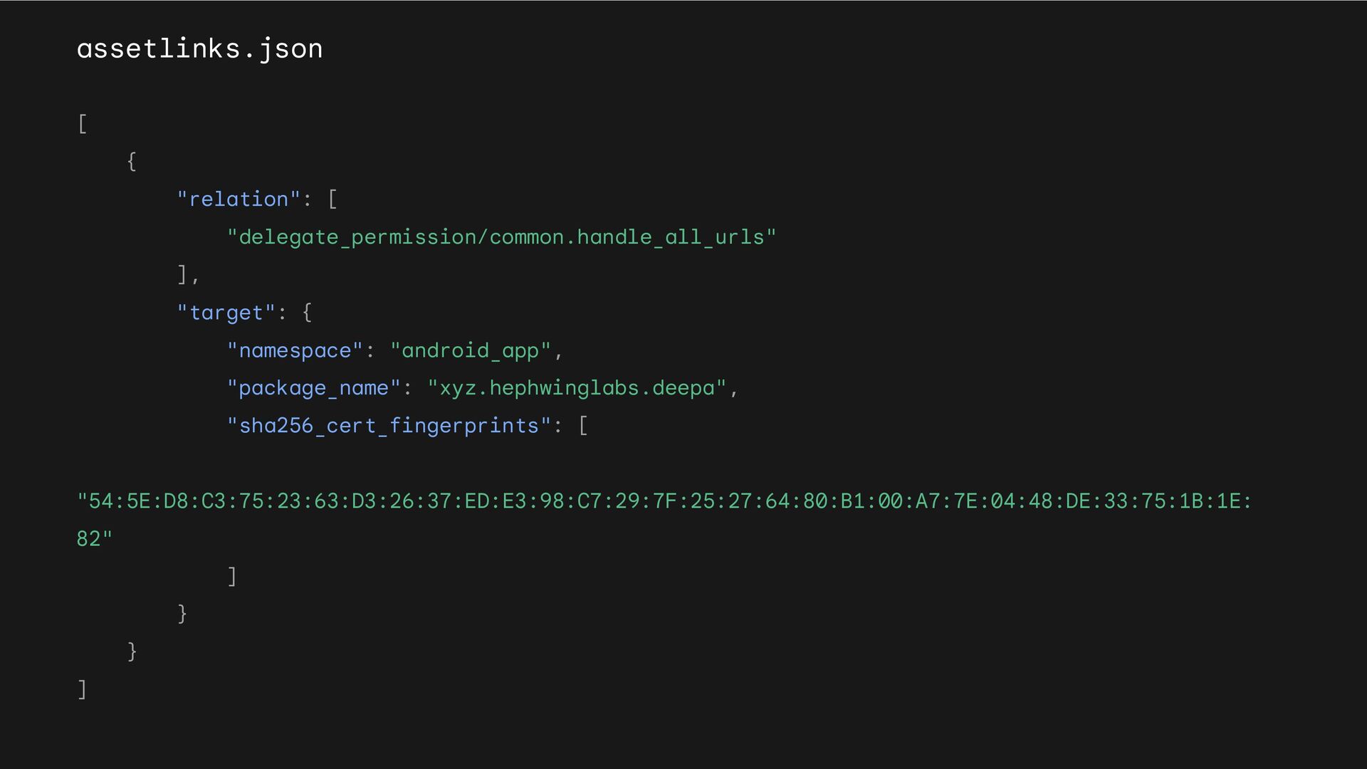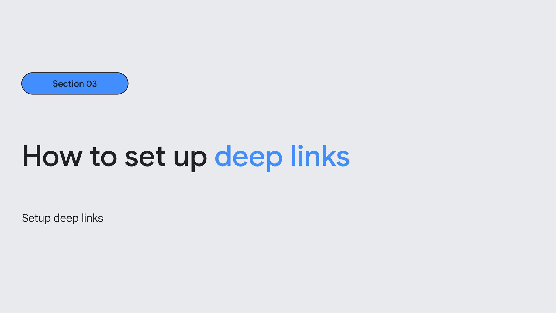 a store or website. They are used to send users to specific locations in an app or display specific content to the user Deep links Section 01 scheme://host/path https://hepwinglabs.xyz/product