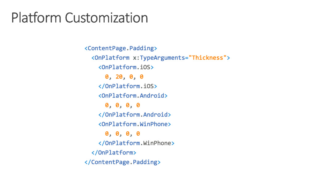 with custom screens, you can embed custom views built directly against Xamarin.iOS and Xamarin.Android into Xamarin.Forms pages. Call Platform APIs via Shared Services Need platform-specific functionality within a Xamarin.Forms page, such as querying the accelerometer? We’ve included services that quickly and easily abstract platform-specific API calls to keep you writing as much shared code as possible. Easy migration to the Xamarin Platform When your native platform integration requirements outgrow Xamarin.Forms, your shared code is easily migrated to Xamarin.iOS and Xamarin.Android using the full Xamarin platform.