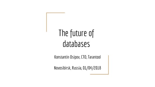 The future of databases Konstantin Osipov, CTO, Tarantool Novosibirsk, Russia,