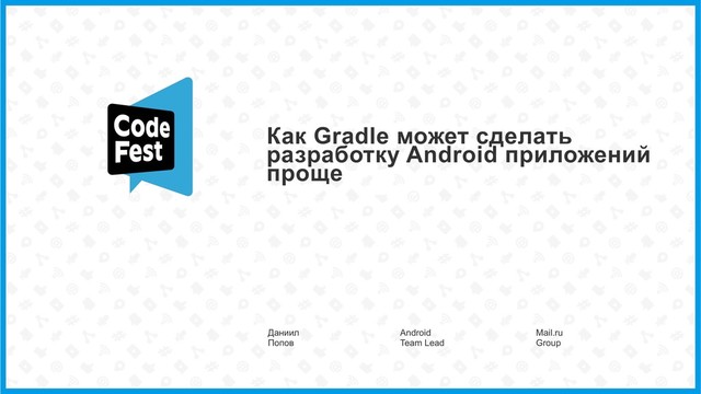 В докладе рассмотрим возможности Gradle, позволяющие сделать Android-разработку чуть проще и надёжнее. Слушатели узнают как писать свои task’и и целые плагины, а главное — зачем. Станет понятно какие задачи можно и нужно решать при помощи системы сборки.