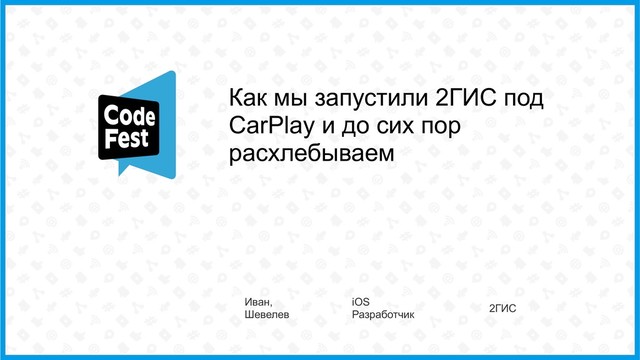 Я расскажу, как начать разработку под CarPlay, с чем придётся столкнуться и какие костыли придется навертеть из-за багов в CarPlay.framework. Поговорим о документации, инструментах разработки и семпл-приложении с WWDC.
