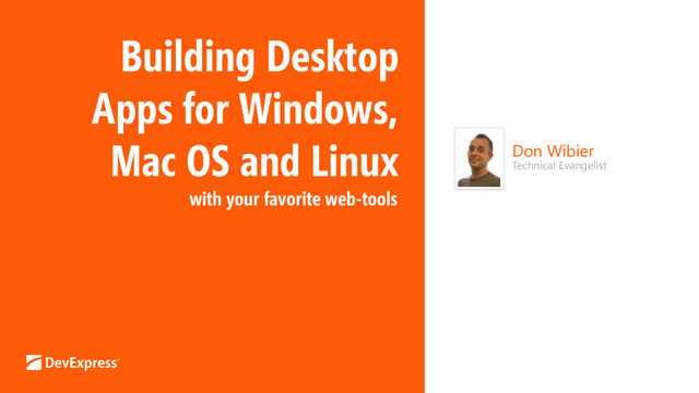 Join Technical Evangelist Don Wibier as he shows you how to set up an HTML5/JavaScript application and deploy it to run as a desktop app on Windows, Mac OS and Linux by using one of the hottest technologies available today — Electron.