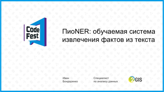 Основа городского информационного сервиса - полная и актуальная информация о разнообразных фирмах, госучреждениях и прочих организациях. Сейчас в 2ГИС вся эта информация собирается нашими специалистами вручную. Но что, если на помощь живым людям придёт не знающий усталости робот? А поскольку практически все городские организации имеют свой веб-сайт или хотя бы страничку в соцсети, то такому роботу не придётся ходить по улицам или ездить на троллейбусе. Ему достаточно пройти по интернету в поисках корпоративных сайтов и прочитать там разные факты о фирмах: как называются, где находятся, когда работают… Однако веб-дизайнеры - люди творческие, и частенько один созданный ими сайт не похож на другой. В подобных условиях для извлечения фактов из корпоративных сайтов уже не обойтись одними лишь регулярками и XPath-выражениями. В своём докладе я расскажу, как мы использовали методы машинного обучения и компьютерной лингвистики для разработки такого робота, который умел бы понимать текстовый контент любых корпоративных сайтов и извлекать оттуда нужную нам информацию