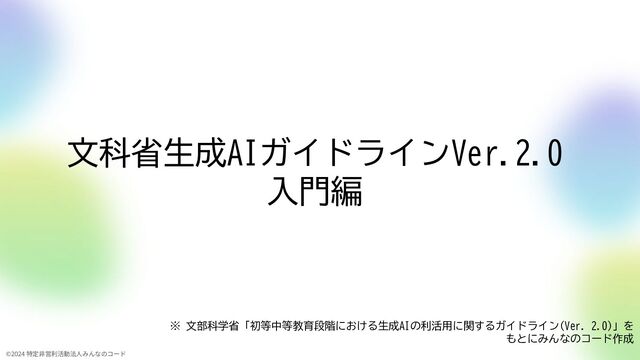 2. 原則、成績情報は入力しない 3. 個人情報保護法、著作権侵害に注意 4. バイアスを理解、最後は教職員が判断 5. 管理職は、適切な利活用か確認 ポイント 授業準備 • 教材・確認テスト問題のたたき台 • 児童生徒の授業感想の集約 • 発問への回答シミュレーション相手 • 授業のワークシート・振り返り内容を基にテスト問題たたき台 • 校外学習の実施行程作成のたたき台 部活動 • 過去の練習メニュー一覧を読み込ませ、毎日の練習メニュー案 生徒指導 • 生活実態の調査のためのアンケート案 教務管理 • 時間割・授業時数案 情報発信 • お便り(学年/学級/給食/保健だより等)・通知・案内文たたき台 • 学校行事に関するHP掲載文・報告記事のたたき台 校内研修 • 校内研修の資料たたき台 • 研修・講演会の録画を読み込ませ、要約・議事録案 外部対応 • 保護者会・授業参観・保護者面談の日程調整 • 外部向け講演会の挨拶文たたき台 教務管理 情報発信 • お便り(学年/学級/給食/保健だより等)・通知・案内文たたき台 • 学校行事に関するHP掲載文・報告記事のたたき台 校内研修 具体的な利活用例