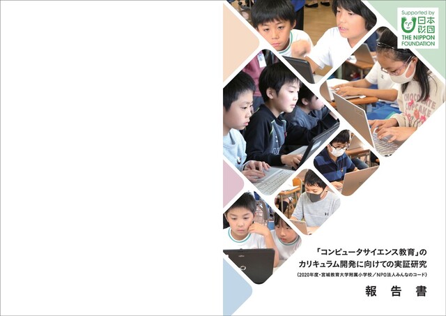 NPO法人みんなのコードと宮城教育大学附属小学校が実施した、コンピュータサイエンス教育のカリキュラム開発に向けた実証研究に関する2020年度報告書です。