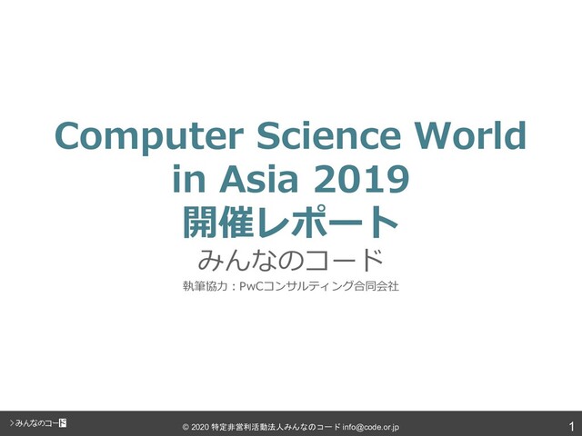 2019年10月27日(日)、東京大学本郷キャンパスで開催された、産学連携、テクノロジー教育の次の流れをつくる国際会議「Computer Science World in Asia」の開催レポート(日本語・詳細版)です。一般社団法人新経済連盟、東京大学大学院情報学環・学際情報学府、特定非営利活動法人みんなのコード共催。