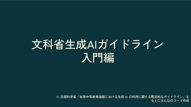 文科省生成AIガイドライン 入門編 ※ 文部科学省「初等中等教育段階における生成 AI の利用に関する暫定的なガイドライン」を もとにみんなのコード作成