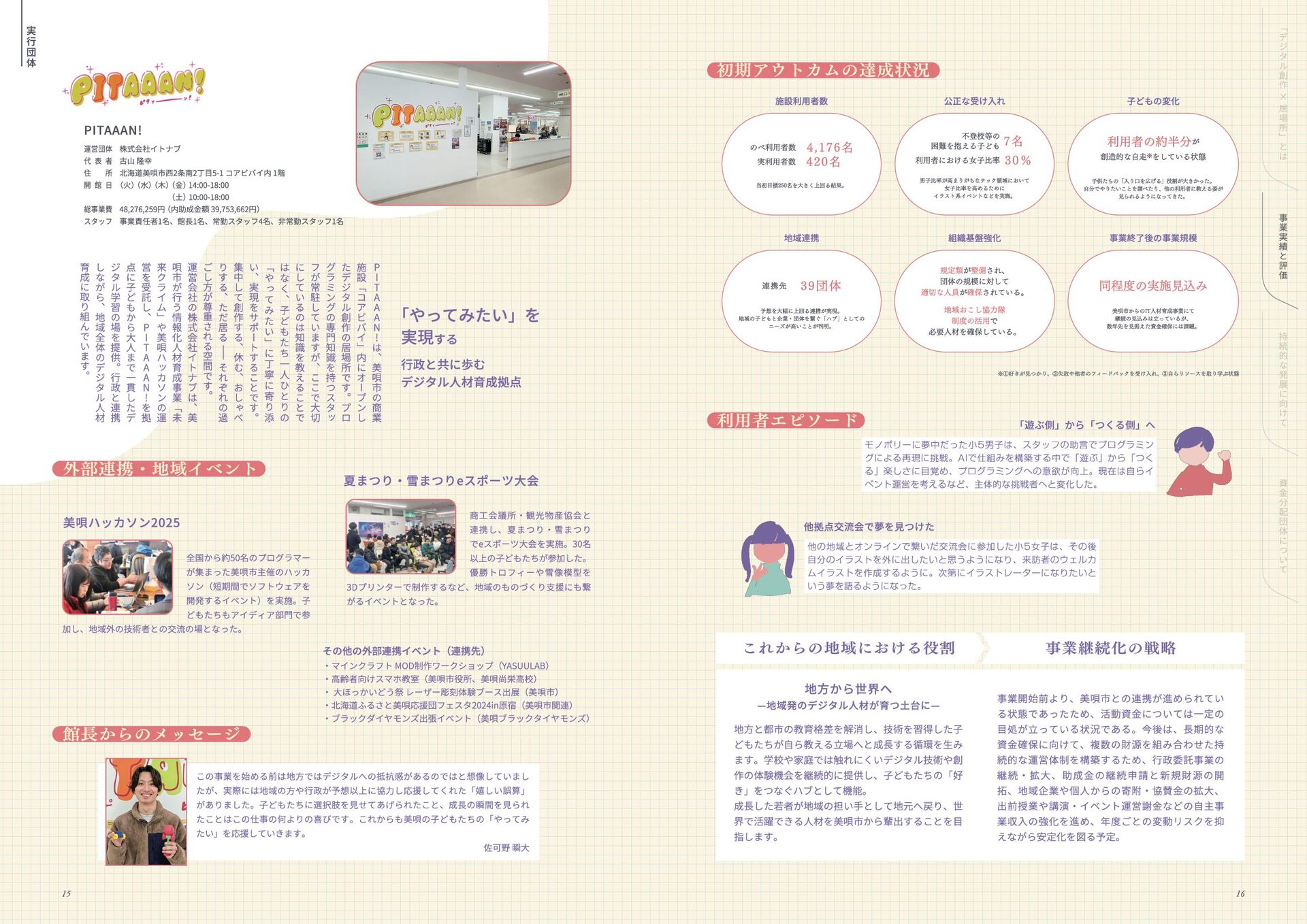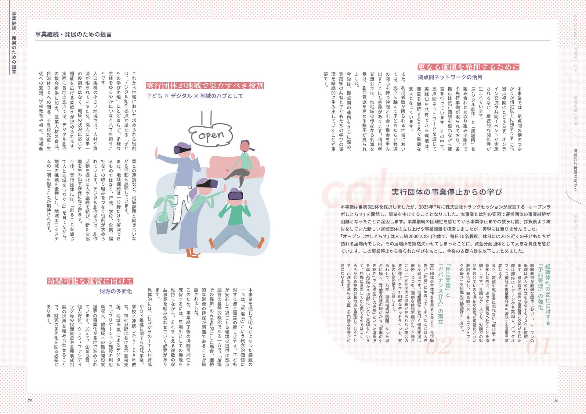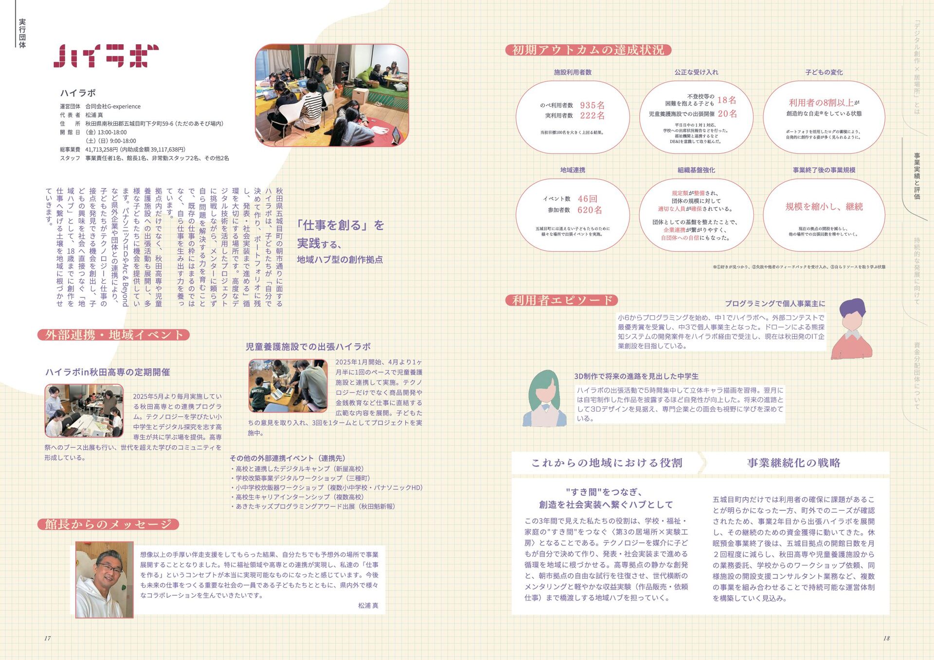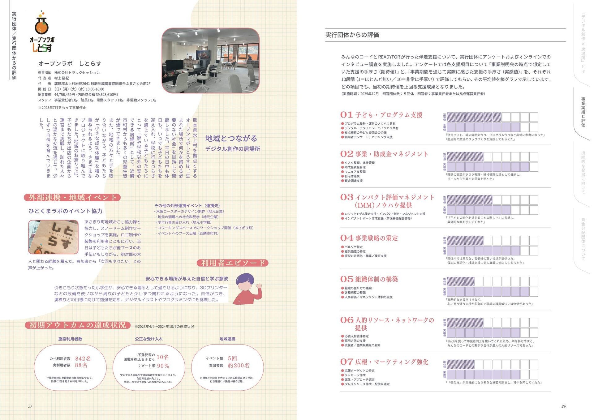 年 度 休 眠 預 金 活 用 事 業 : ﹁ 創 造 性 ﹂ の 格 差 を 埋 め る   ~ イ ノ ベ ー シ ョ ン 人 材 と な る 機 会 を ︑ す べ て の 子 ど も に ~ デ ジ タ ル テ ク ノ ロ ジ ー × 居 場 所 創 造 事 業   事 業 報 告 書 このレポートは休眠預金事業によって制作されています 小さなまちで始める デジタル創作の居場所 本誌掲載の記事、写真、図表等の無断転載、無断転写を禁じます ©特定非営利活動法人みんなのコード