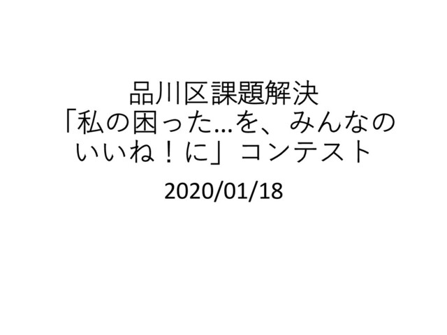 品川区課題解決 「私の困った...を、みんなの いいね!に」コンテスト 2020/01/18