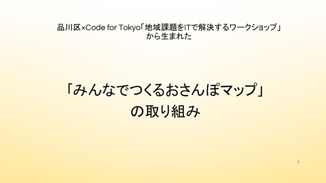 品川区×Code for Tokyo「地域課題をITで解決するワークショップ」 から生まれた 「みんなでつくるおさんぽマップ」 の取り組み 1