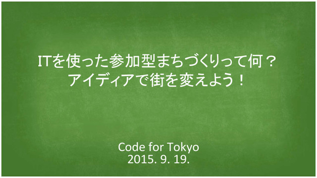 ITを使った参加型まちづくりって何? アイディアで街を変えよう! Code for Tokyo 2015. 9. 19.