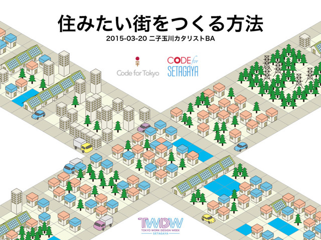 2015年3月20日「TWDW SETAGAYA 働くと暮らすをつなぐ7日間」にて「住みたい街をつくる方法」と題してCode for Tokyo、Code for Setagayaがワークショップを開催した際のスライドです。