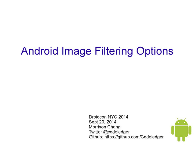 Debugging capabilities • More documentation from Google • 3rd Party Libraries (may depend on API level) • Focused on image processing – looking for other use cases