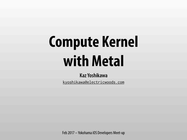 This is a presentation materials at Yokohama iOS developer meeting in Feb. 2017. It gives you a very basic idea of Metal computing Kernel, and show the example codes.