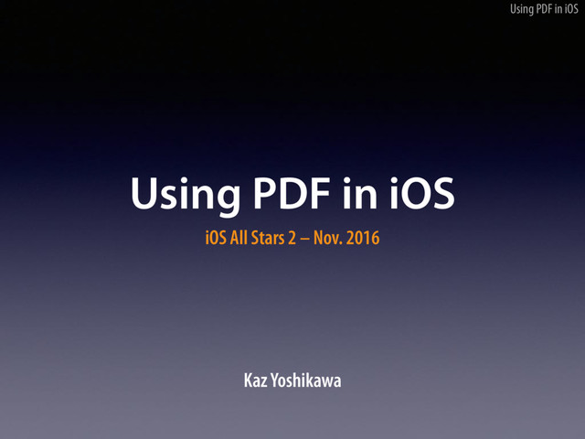 Presentation material for `iOS All stars 2` that held in Nov. 2016. You may find tips & tricks how to handle PDF in iOS.