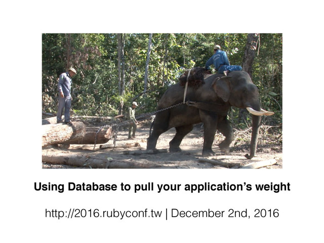 The talk is about utilizing your database more so that you can offload lot of CPU intensive tasks from ruby to rails to make your application run faster.