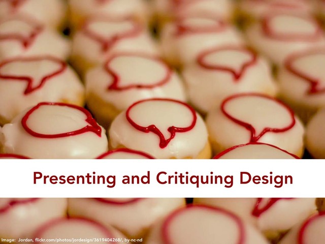 purpose is to improve the design. Be honest. Be humble. Take notes. Thank. ☺ Good “That’s a good point, I didn’t see that.” [makes a note] ☹ Bad “No! You won’t be able to understand this, but this will totally rock!”