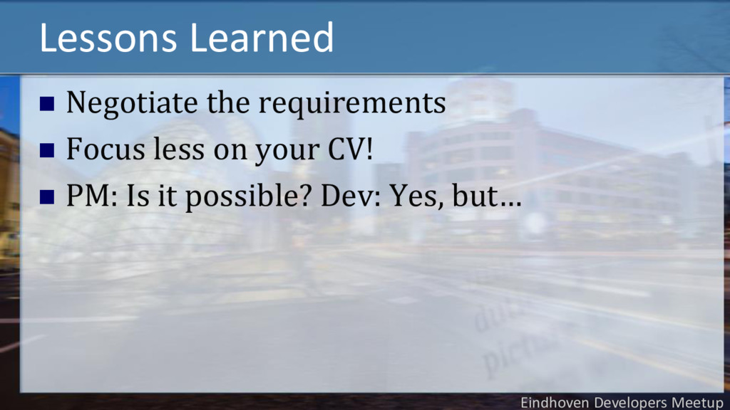 Lessons Learned Eindhoven Developers Meetup Negotiate the requirements