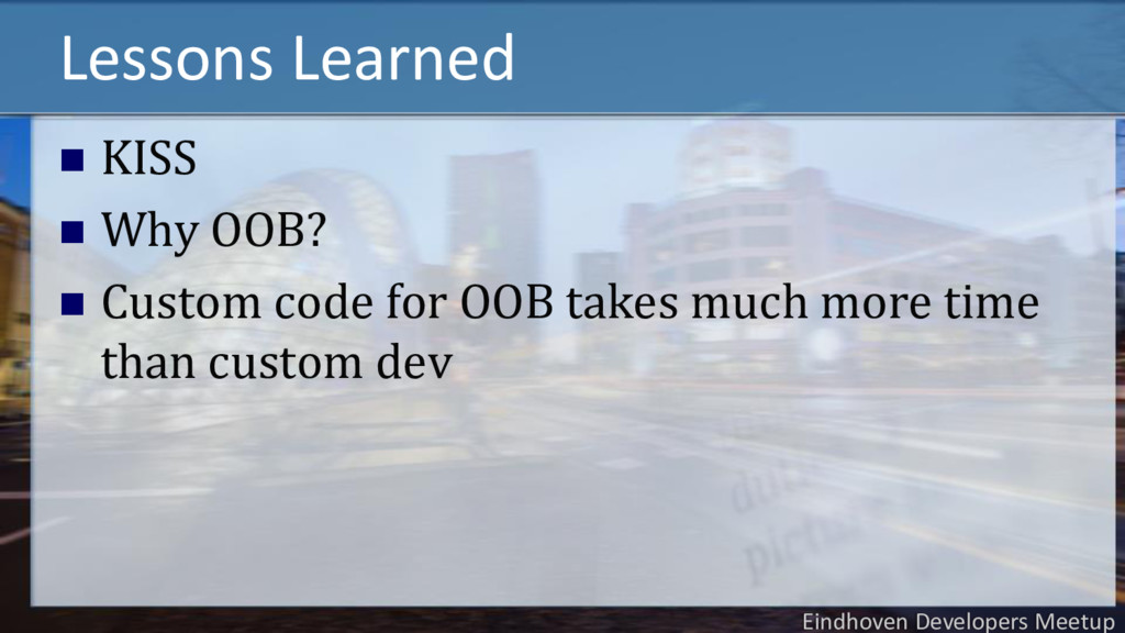Lessons Learned Eindhoven Developers Meetup KISS Why OOB?