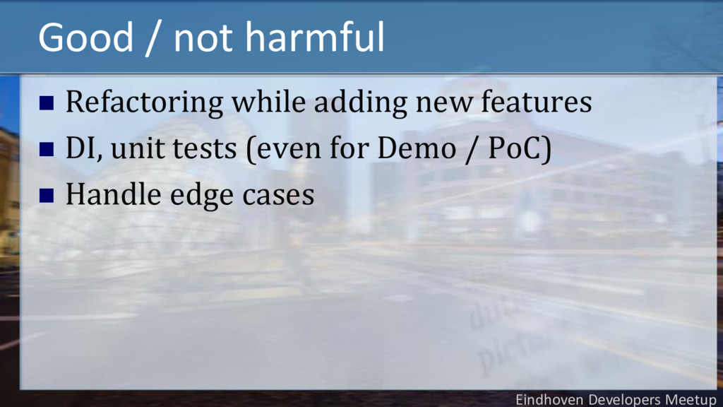 Good / not harmful Eindhoven Developers Meetup Refactoring while