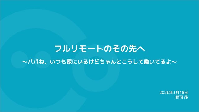 フルリモートのその先へ 〜パパね、いつも家にいるけどちゃんとこうして働いてるよ〜 2026年3月18日 郡司 昂