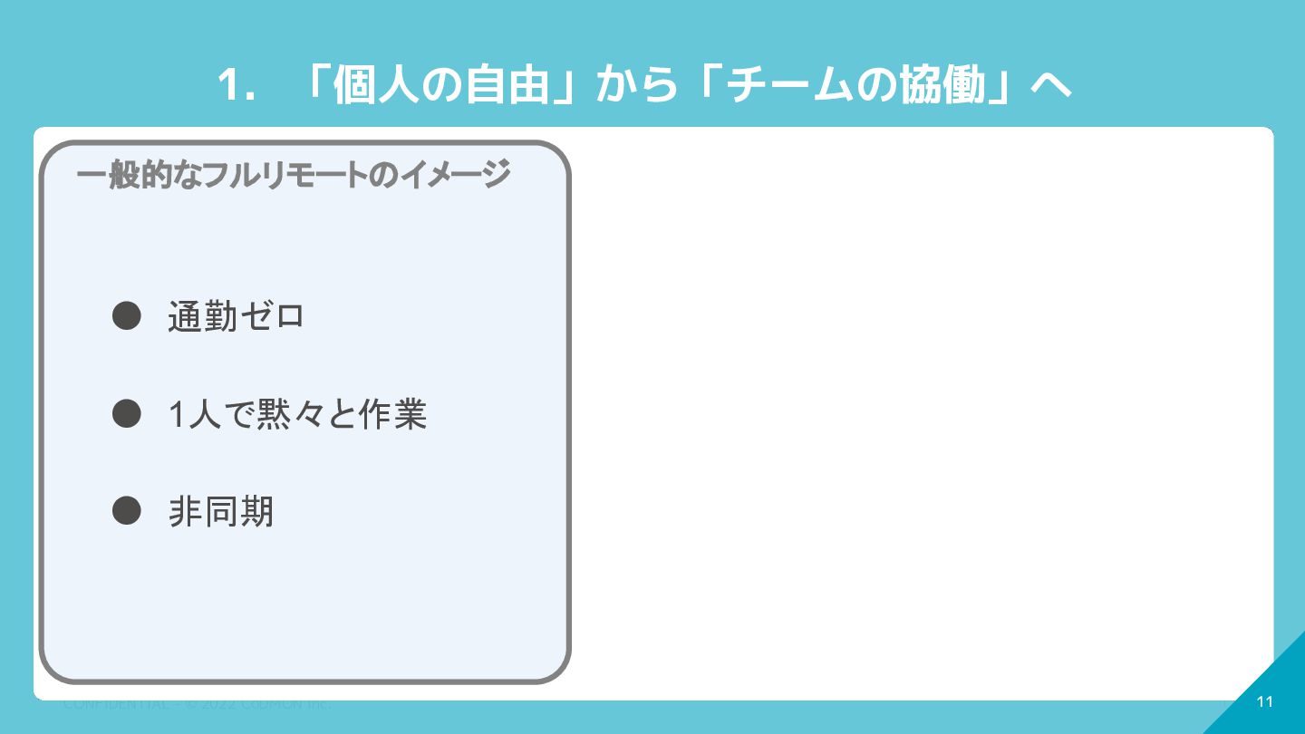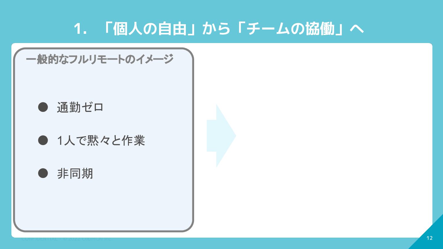 11 CONFIDENTIAL - © 2022 CoDMON Inc. 11 1. 「個人の自由」から「チームの協働」へ