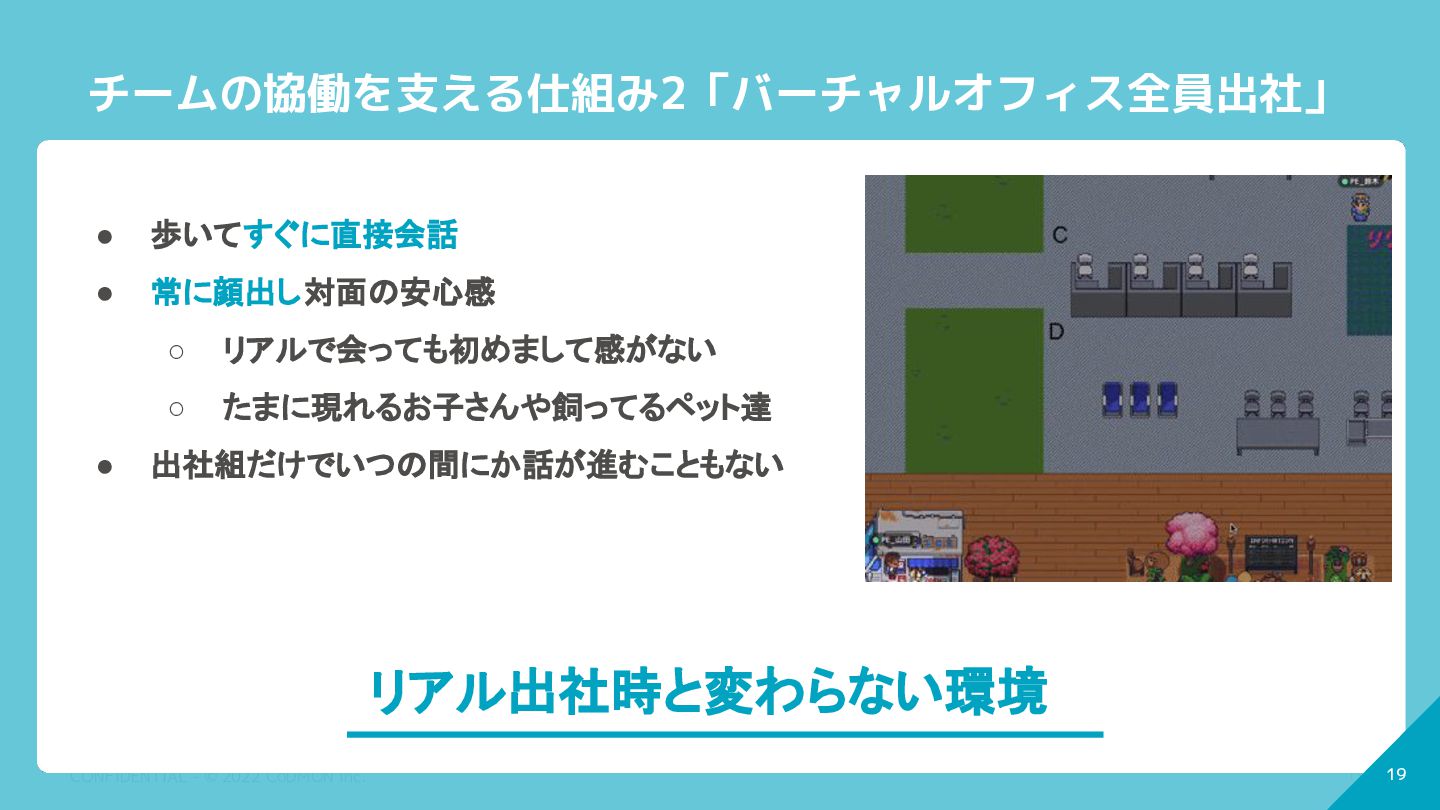 18 CONFIDENTIAL - © 2022 CoDMON Inc. 18 業務開始と同時に基本 全員バーチャルオフィスに入る