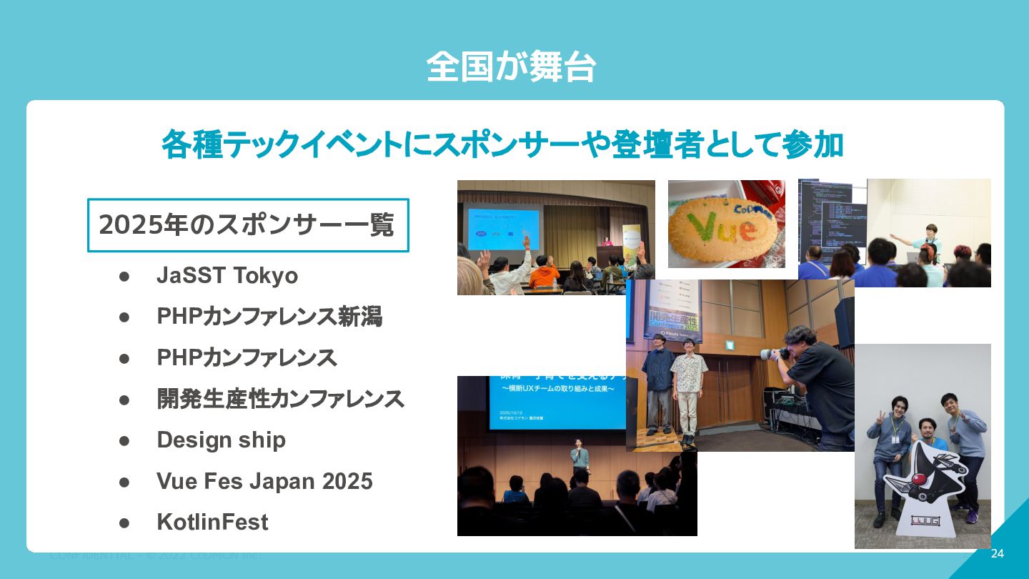 24 CONFIDENTIAL - © 2022 CoDMON Inc. 24 全国が舞台 各種テックイベントにスポンサーや登壇者として参加
