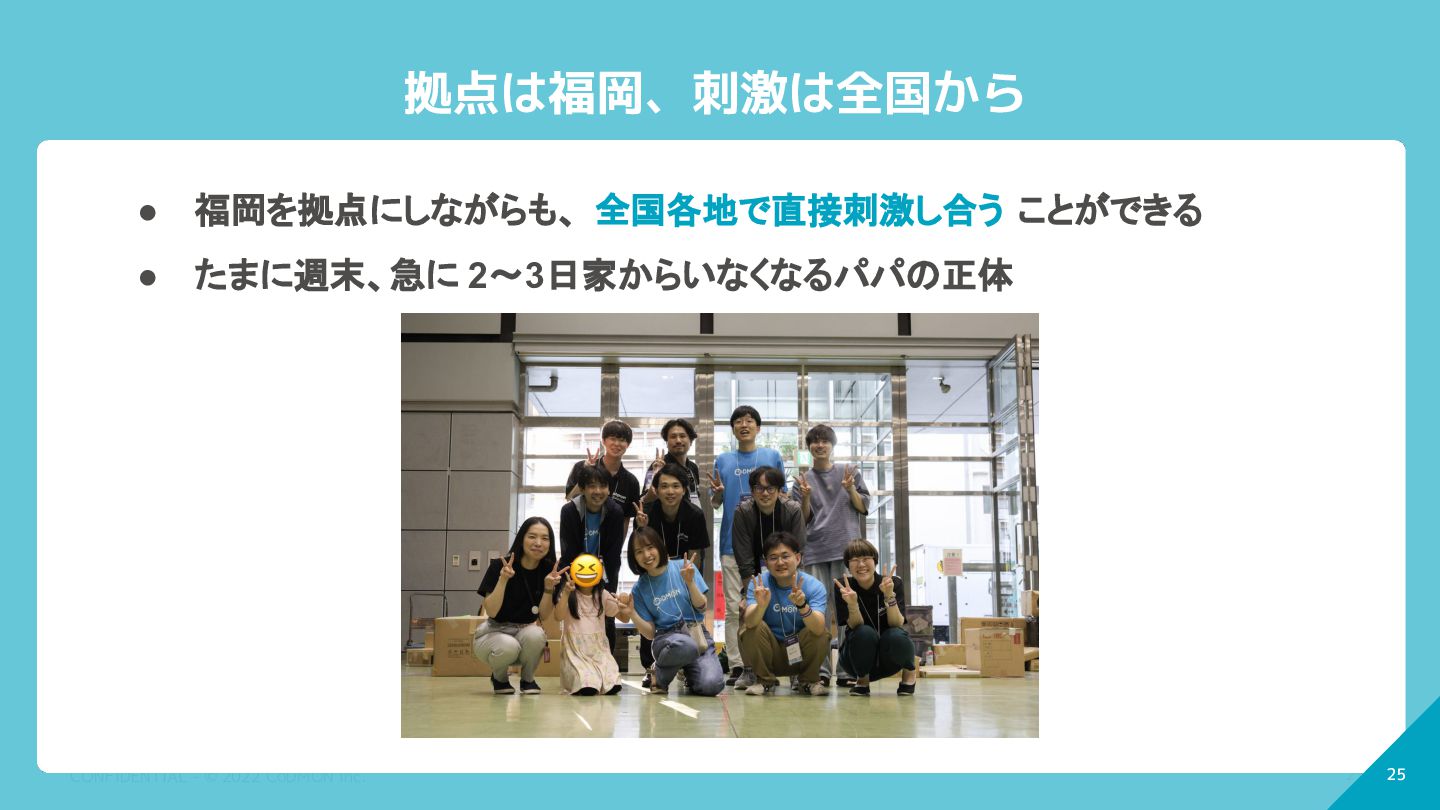 23 CONFIDENTIAL - © 2022 CoDMON Inc. 23 オフラインでも熱量を同期 福岡在住メンバーの