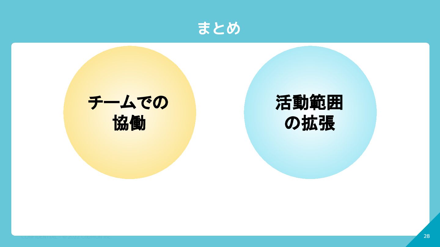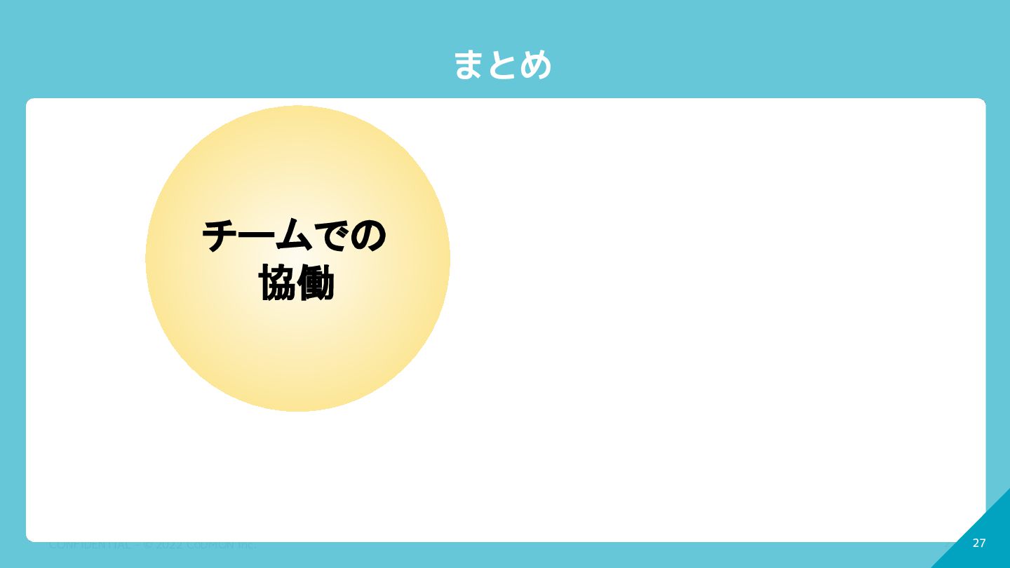 27 CONFIDENTIAL - © 2022 CoDMON Inc. 27 まとめ チームでの