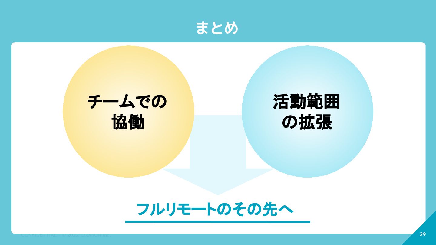 28 CONFIDENTIAL - © 2022 CoDMON Inc. 28 まとめ チームでの