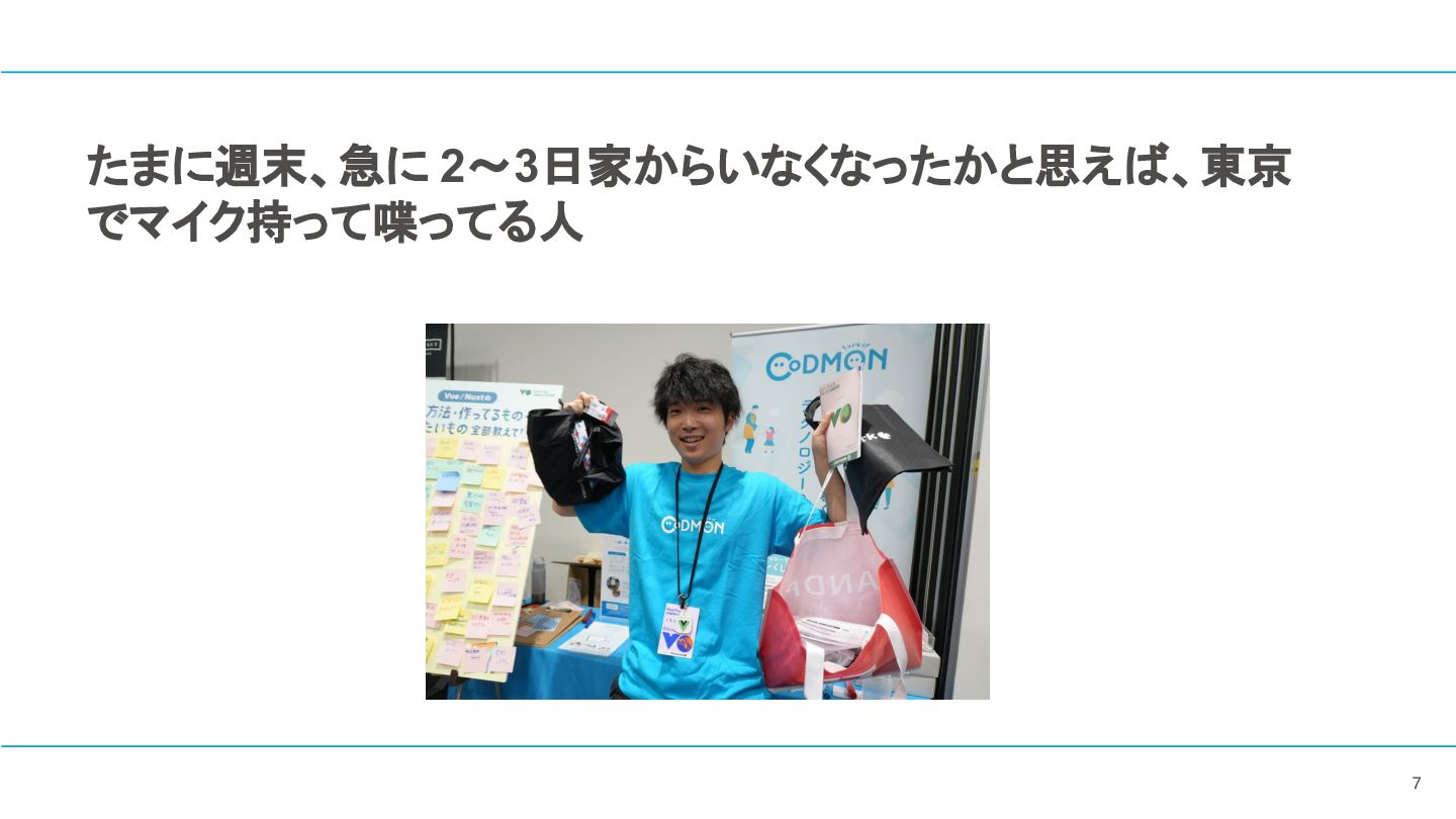 7 たまに週末、急に 2〜3日家からいなくなったかと思えば、東京 でマイク持って喋ってる人