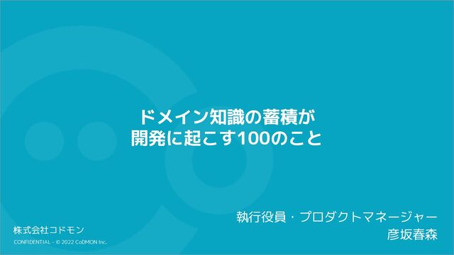 CONFIDENTIAL - © 2022 CoDMON Inc. 株式会社コドモン 執行役員・プロダクトマネージャー 彦坂春森 ドメイン知識の蓄積が