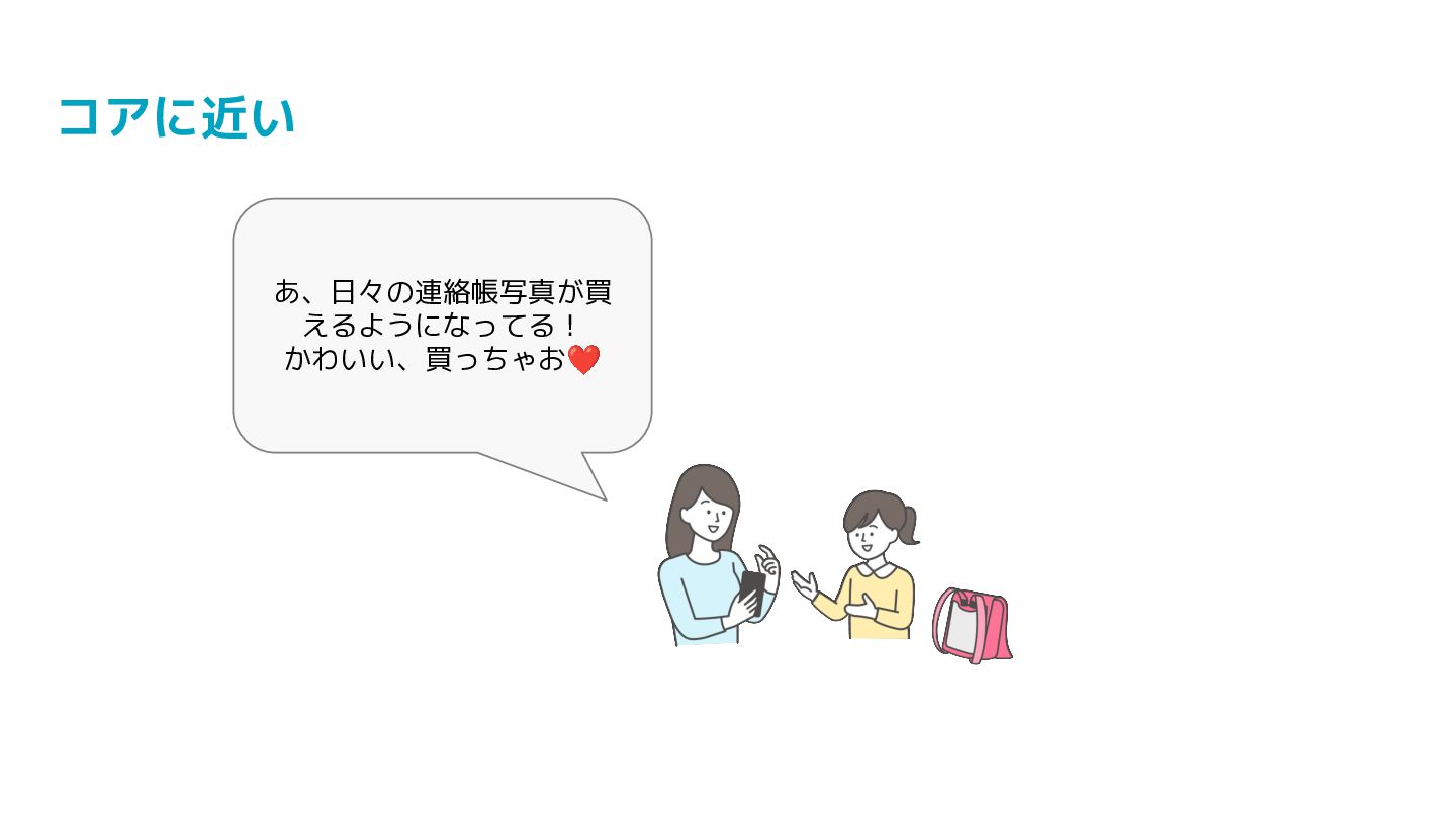 あ、日々の連絡帳写真が買 えるようになってる! かわいい、買っちゃお❤ コアに近い