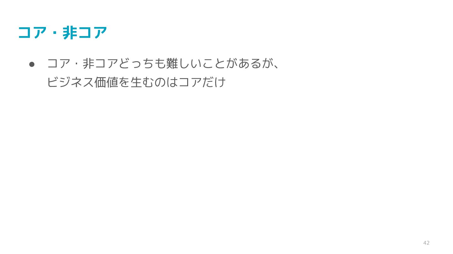 42 • コア・非コアどっちも難しいことがあるが、 ビジネス価値を生むのはコアだけ コア・非コア