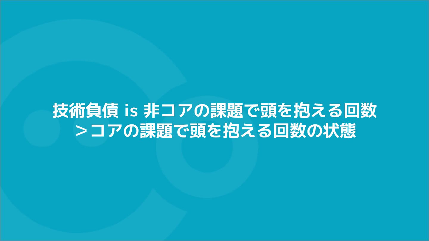 技術負債 is 非コアの課題で頭を抱える回数 >コアの課題で頭を抱える回数の状態