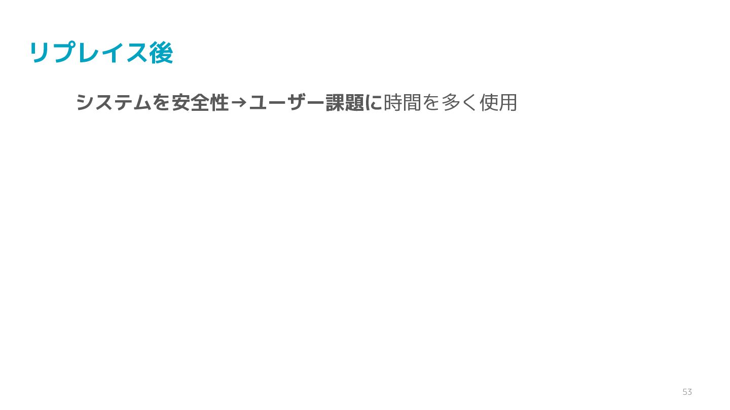 53 システムを安全性→ユーザー課題に時間を多く使用 リプレイス後