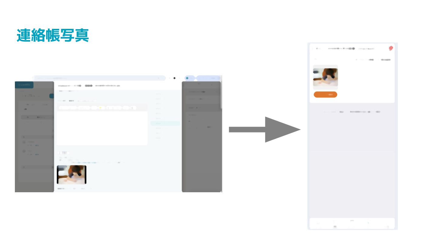 連絡帳写真 • before ◦ システム都合の議論 ▪ 連絡帳の写真をどう表示してあげる? ▪ 表示はできたとして、どうやってカート、注文とインテグレーション させる?