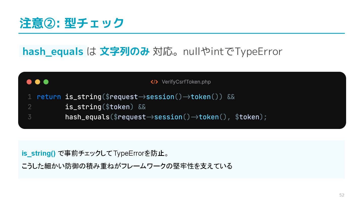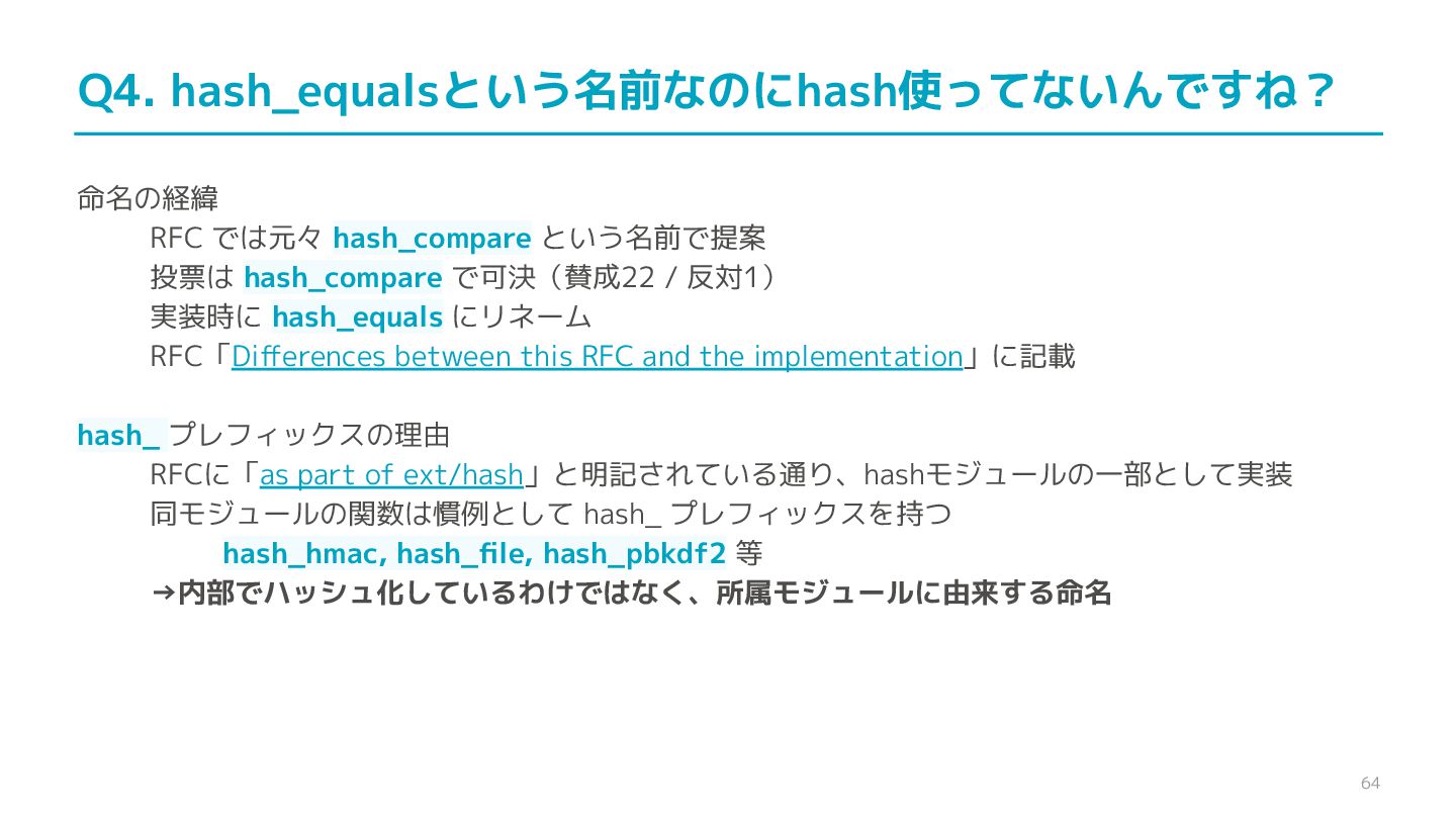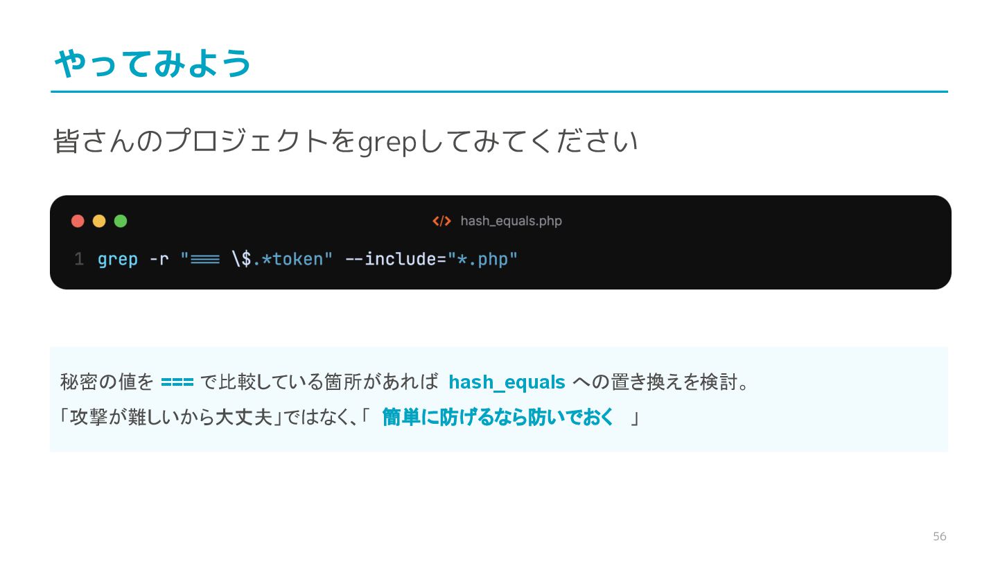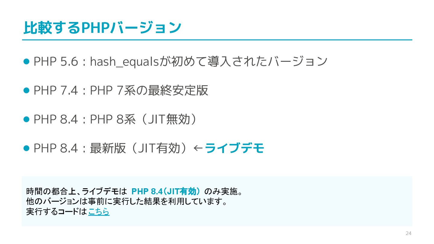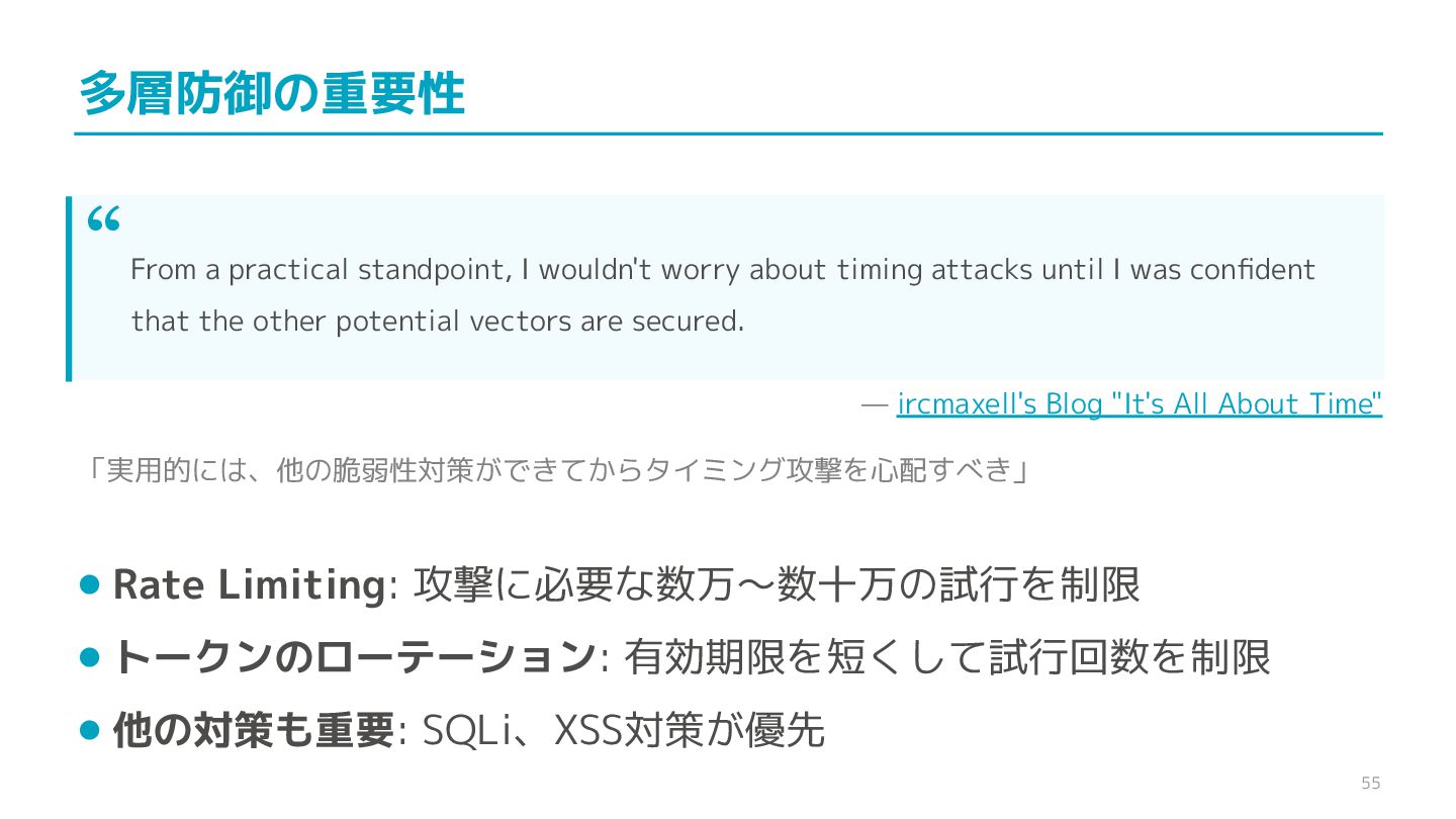 compare confidential data, such as cryptographic secrets, because the CPU time required for the comparison depends on the contents of the addresses compared, this function is subject to timing-based side-channel attacks. (機密データ(暗号シークレットなど)の比較にmemcmp()を使用しないでくだ さい。比較にかかるCPU時間は比較されるアドレスの内容に依存するため、こ の関数はタイミングベースのサイドチャネル攻撃を受けやすいです。)