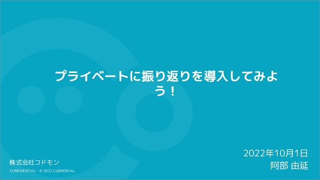 CONFIDENTIAL - © 2022 CoDMON Inc. 株式会社コドモン 2022年10月1日 阿部 由延