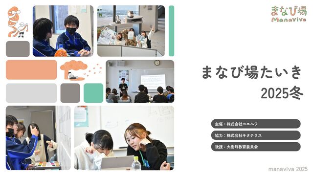 ったけど、深く考えることはなかったので、また新しい世界が広がりました。人 についても機会についてもちゃんと考えて、新しい自分に出会いたいと思いまし た。(中3女子) 「まちづくりは広すぎて難しいから何か一つ好きなことを専門的に突き詰めてプ ロになって後々町に活かす方がいいと思う」と大学生から教えてもらいました。 町の大人(神宮司さん)に同じようなことを言われていたことが本当に理解でき ました。(高2女子) 自分について見直す良いきっかけにもなりました。もっと色々なことをお聞きし たかったです。この経験を通して、もう一度色々なことに関して深く考えて見よ うと思いました。(高2女子) manaviva 2025