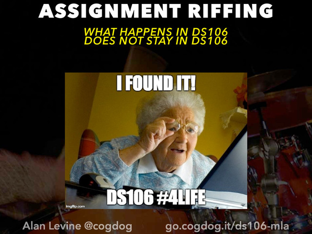 Unlike MOOCs (of c and x variety), his open digital story course ds106 uniquely stands as more than one course, but as overlapping ones from multiple institutions with a cloud of open participants. Its Internet radio station and Daily Create challenges offer opportunities outside the course. An open assignment bank not only gives flexibility to choose assignments, but also invites participants to add new ones, a living example of the “adjacent possible” in a course. It may appear ludicrous to house assignments for editing images of famous paintings to include fat cats, creating poetry from titles of songs, or putting fast food in the hands of internet pioneers, but the media created are not the end goals in ds106. Participants open their apertures of creative interpretation, incorporate works of others in a constructive fashion, and narrate their creative process. A frequent spirit of spontaneous "riffing" occurs, not unlike that of improvisational jazz musicians, that ripples far beyond the confines of one course.