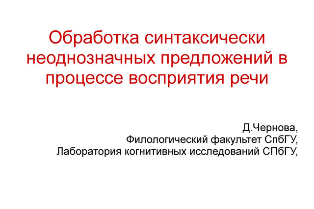 Д. А. Чернова. Обработка синтаксически неоднозначных предложений в процессе восприятия речи