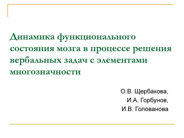 Презентация доклада О. В. Щербаковой, И. А. Горбунова,